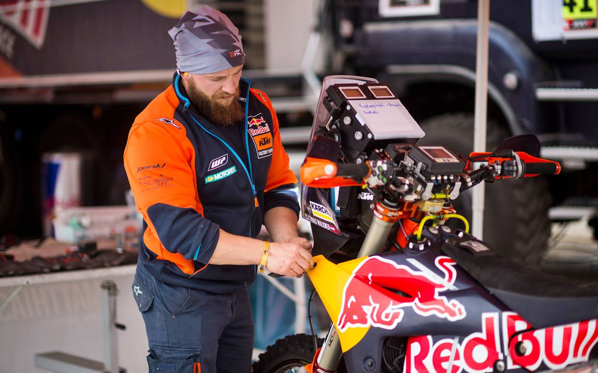Una vez que los competidores llegan al campamento entre las 15 y las 17, los mecánicos comienzan con su verdadero trabajo que incluye la limpieza de los vehículos, cambios de filtros, chequeos de suspensiones, frenos y el resto de elementos vitales. También se reemplazan las piezas que se hayan dañado.