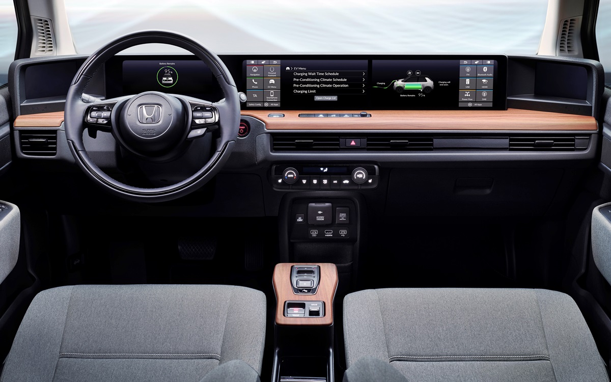 Los paneles negros de la parte delantera y trasera, con un perfil cóncavo único, constituyen motivos de diseño distintivos. La atención a los detalles de los grupos ópticos redondos realza el diseño sencillo y minimalista general del vehículo, y define el frontal de carácter “humano” de este Honda.