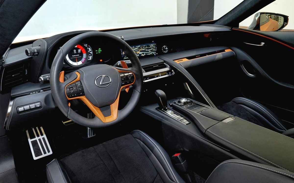 El espectacular color, con acabado mate, permite al LC 500h proyectar una poderosa personalidad que destaca aún más por el contraste que se produce con las llamativas llantas en color negro semi mate de 21 pulgadas.