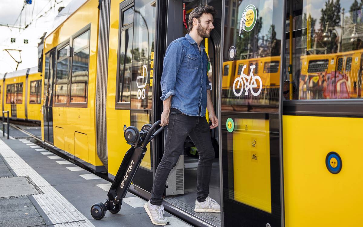 Con un peso de 12 kg, el e-tron Scooter puede plegarse para ser transportado cómodamente en el maletero de un automóvil o para manejarlo como si fuese un trolley con ruedas a la hora de acceder al tren o a un autobús. Según la marca una de sus virtudes es tener un manejo que se asemeja a “surfear sobre las olas”. Otra particularidad es que se puede conducir con una sola mano.